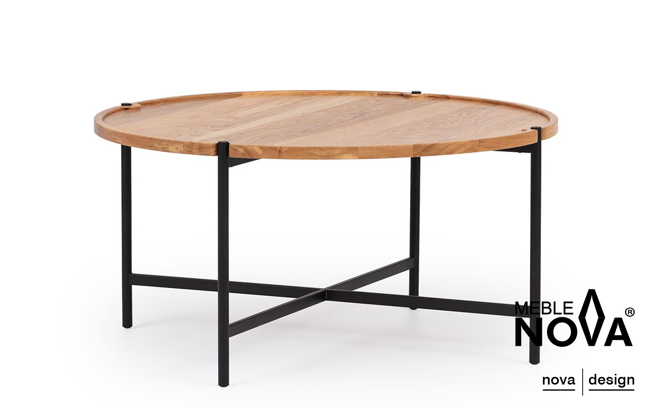 Stoliki Perry to połączenie naturalnego piękna drewna dębowego z nowoczesnym, czarnym metalowym stelażem, który nadaje im surowego, industrialnego charakteru.
