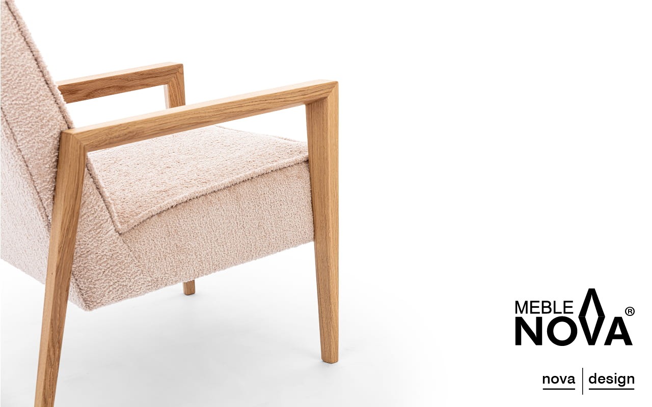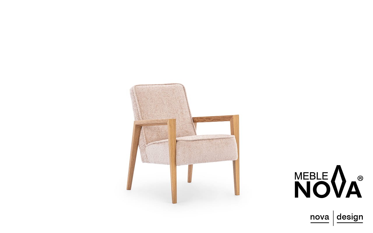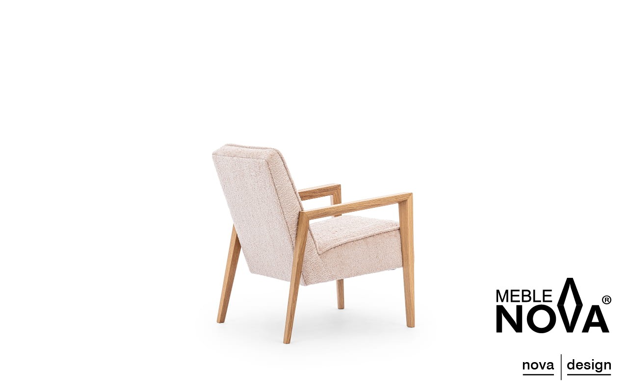 Jego nogi, wykonane z drewna dębowego, które podkreśla klasyczny charakter fotela, a ich subtelna konstrukcja dodaje fotelowi wyjątkowego stylu.