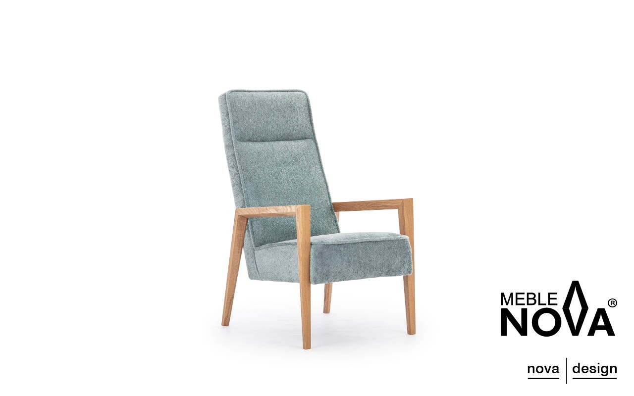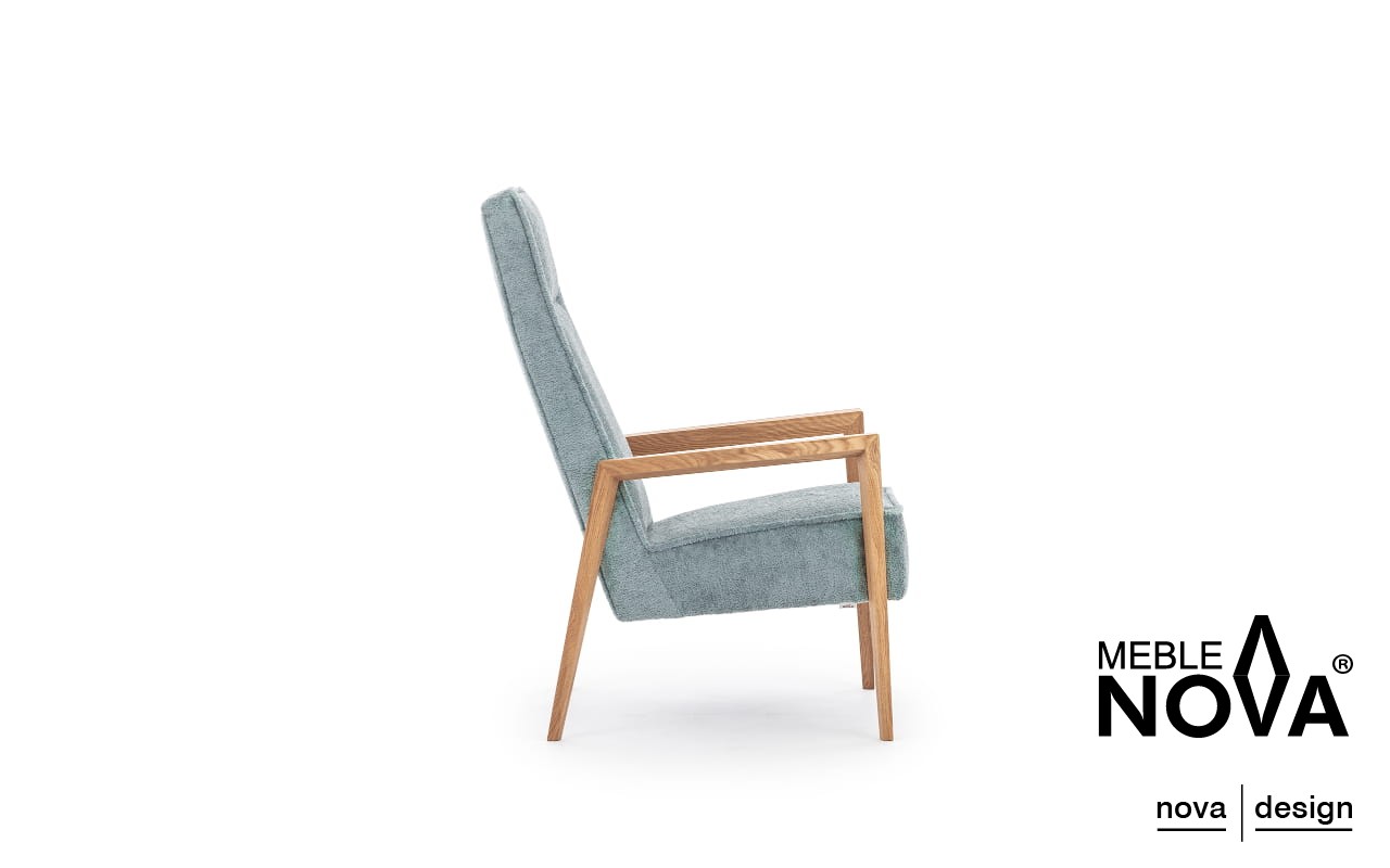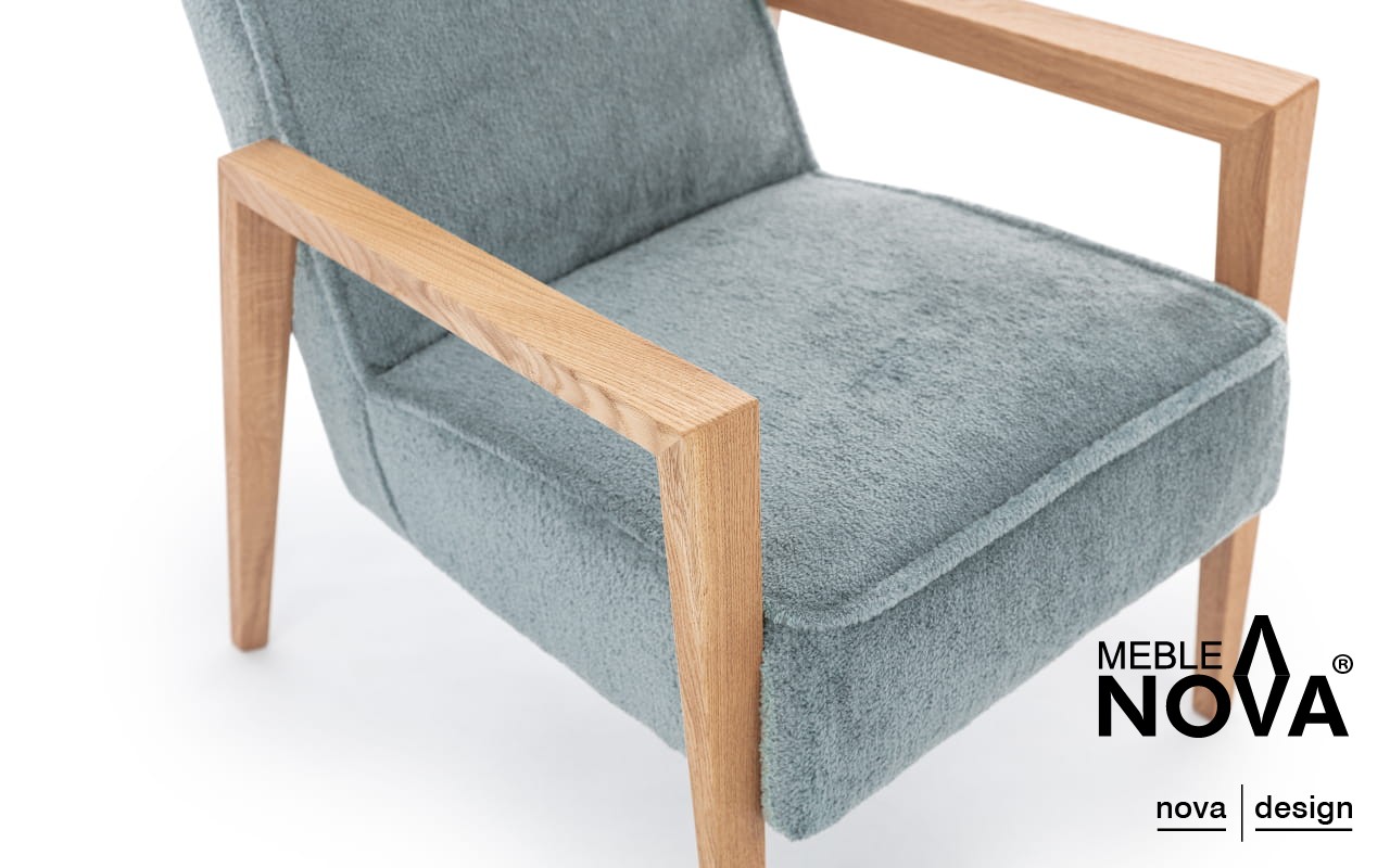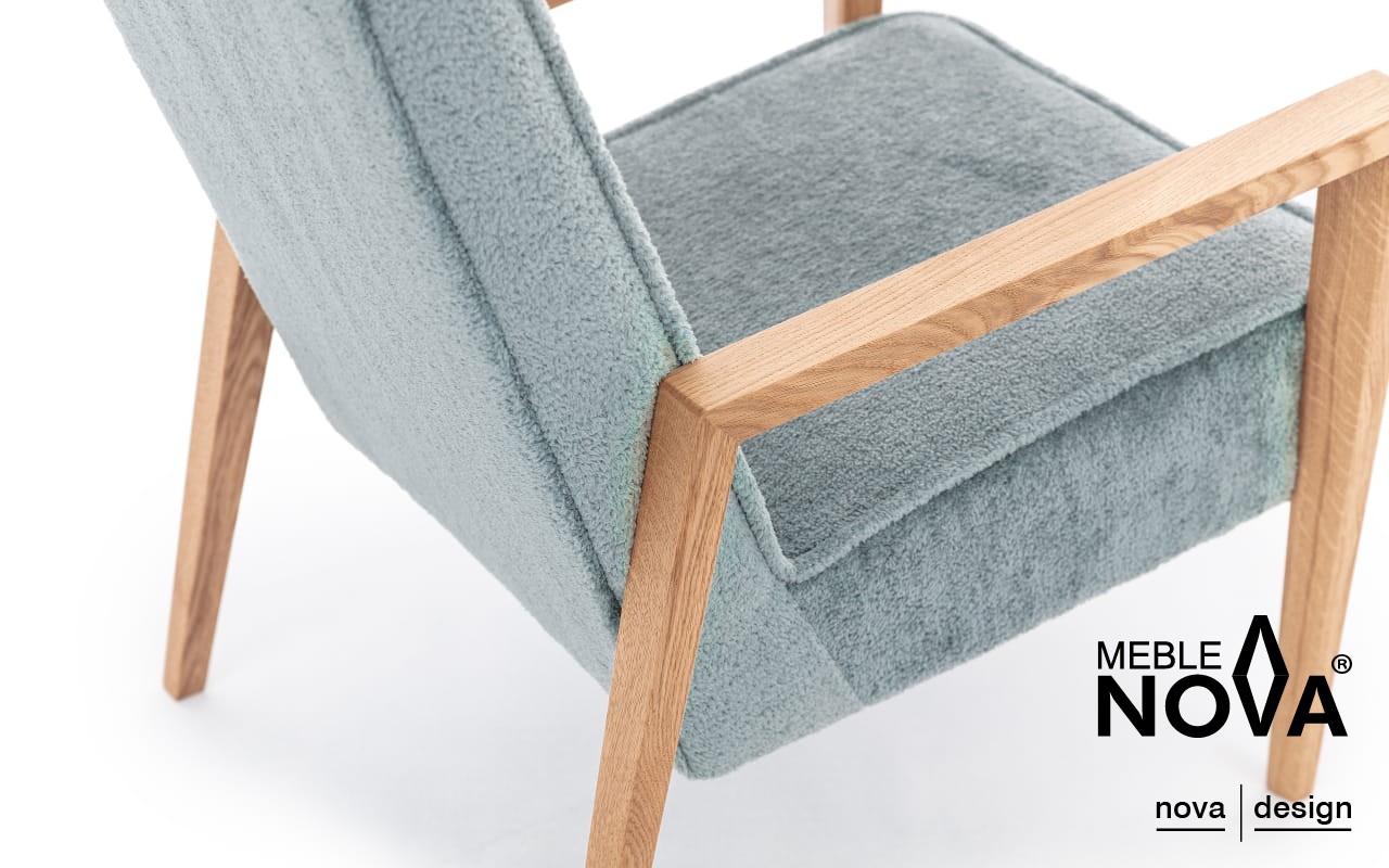 Jego nogi, wykonane z drewna dębowego, które podkreśla klasyczny charakter fotela, a ich subtelna konstrukcja dodaje fotelowi wyjątkowego stylu.