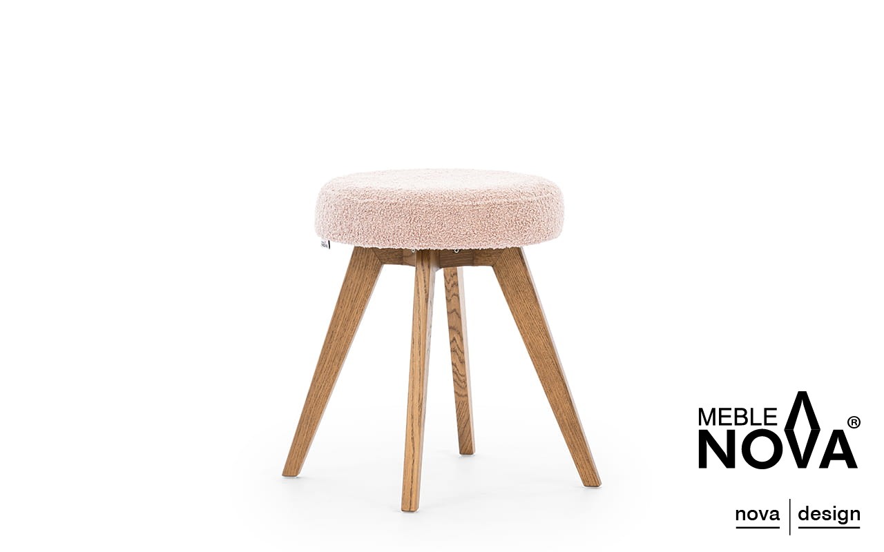 Tapicerka dostępna jest w szerokiej gamie materiałów, co pozwala na dopasowanie taboretu do indywidualnych preferencji oraz charakteru wnętrza.