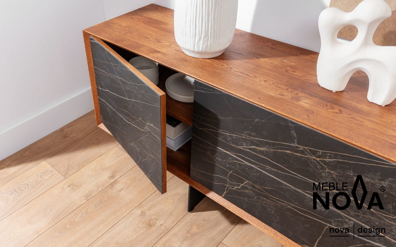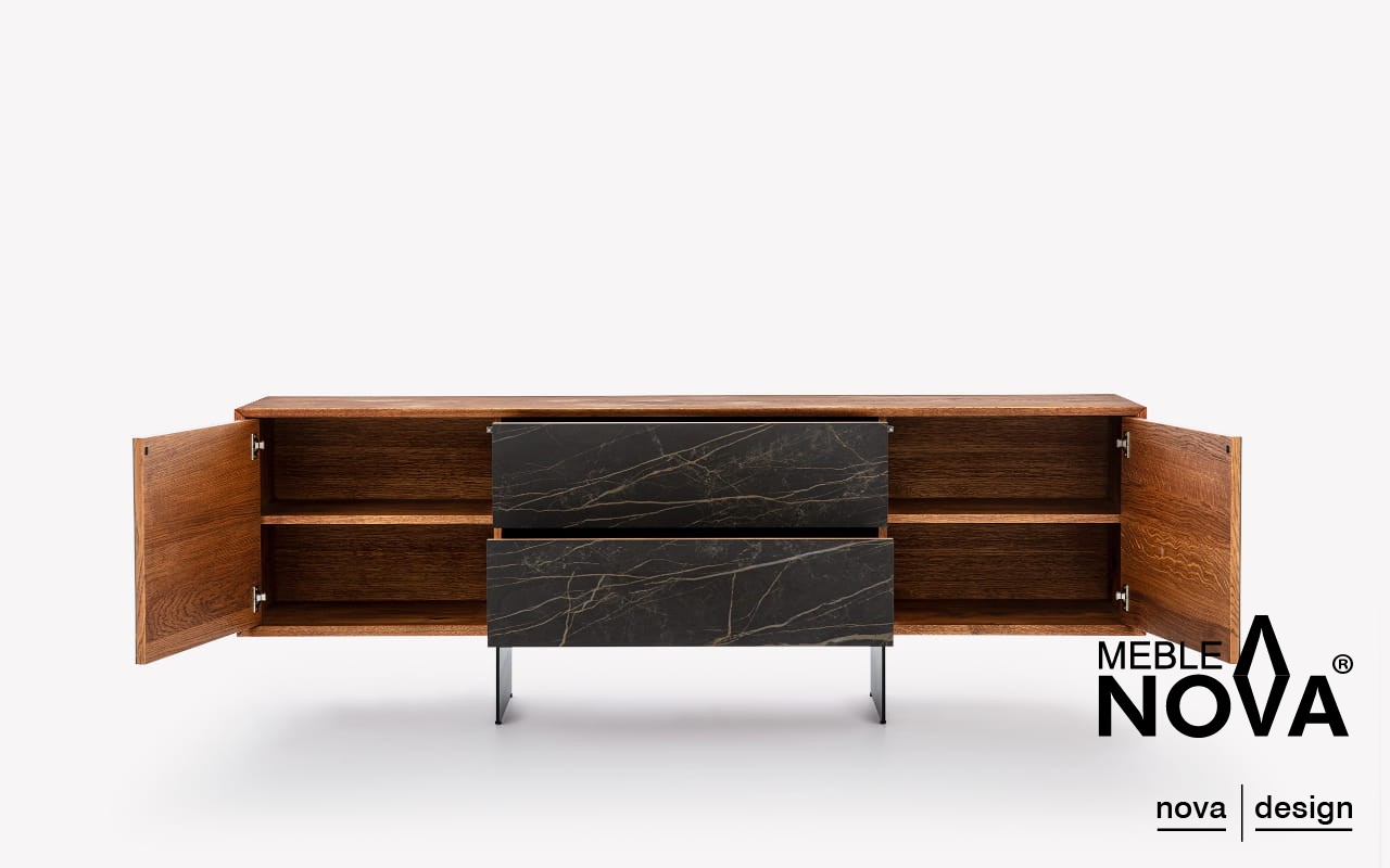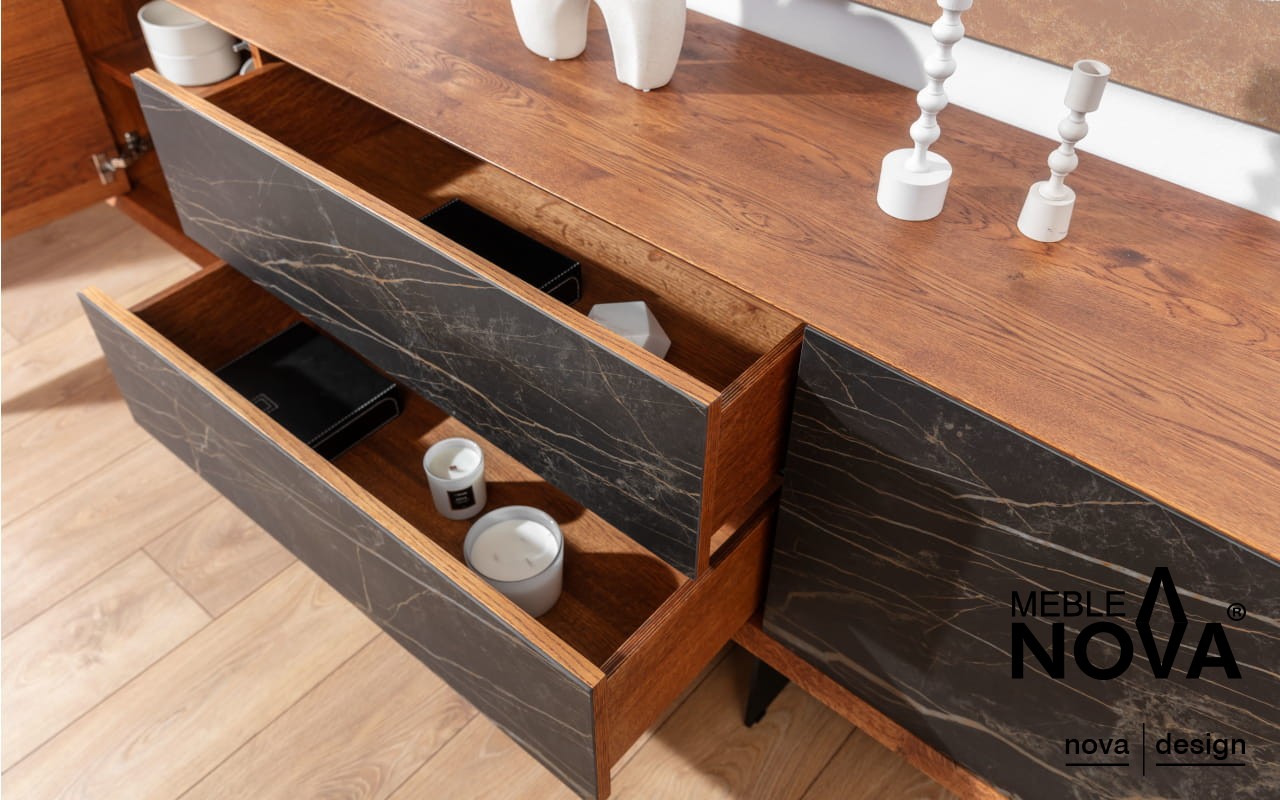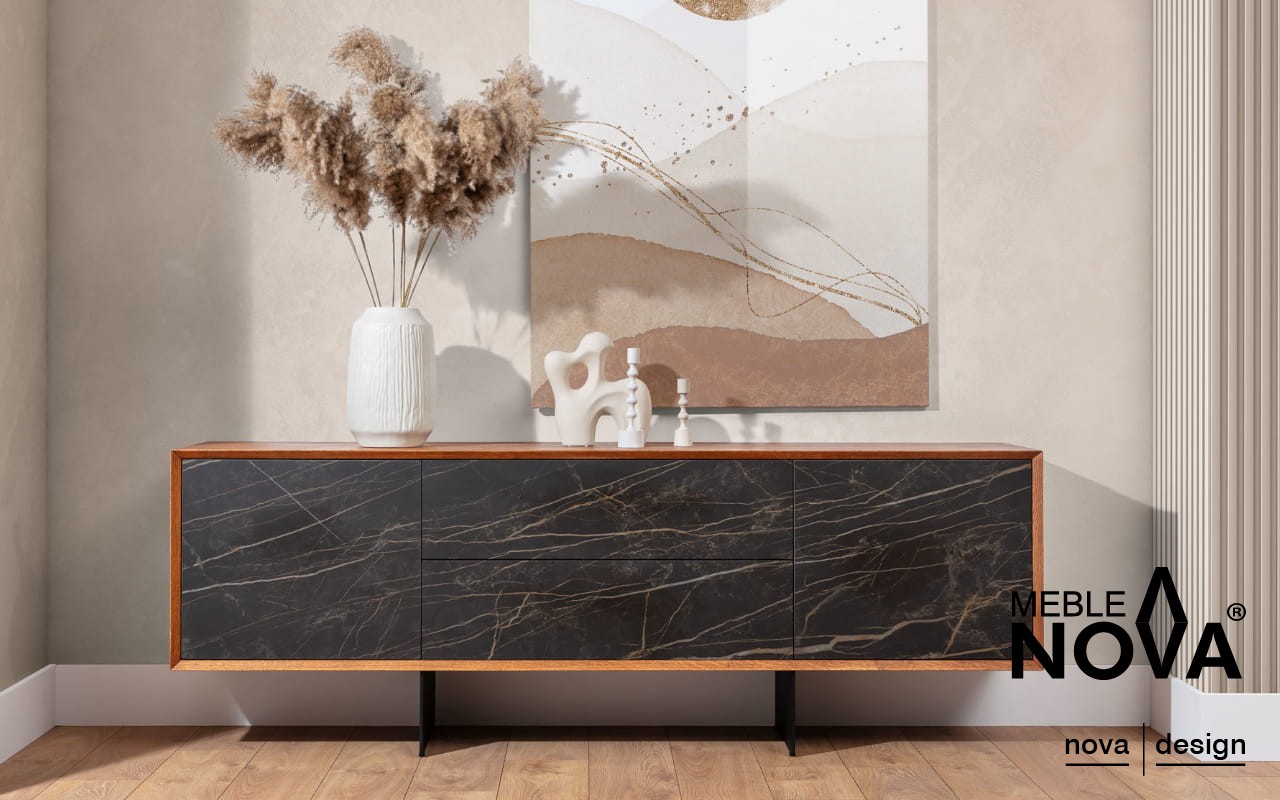 Komoda Stone to harmonijne połączenie naturalnych i nowoczesnych materiałów, które nadaje jej wyjątkowy charakter.